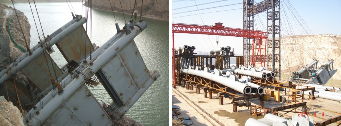 山西準(zhǔn)朔黃河特大橋為上承式鋼管拱橋,主跨為360m的鋼管混凝土拱結(jié)構(gòu),工程量為9100噸。于2009月9月份開(kāi)始施工,到2011年7月份完工。全橋采用橋?yàn)檎w節(jié)段拼裝、纜索吊吊裝的施工方案,克服了四管拱腳空間定位、整體節(jié)段懸拼精確定位、冬季施工等難點(diǎn)。