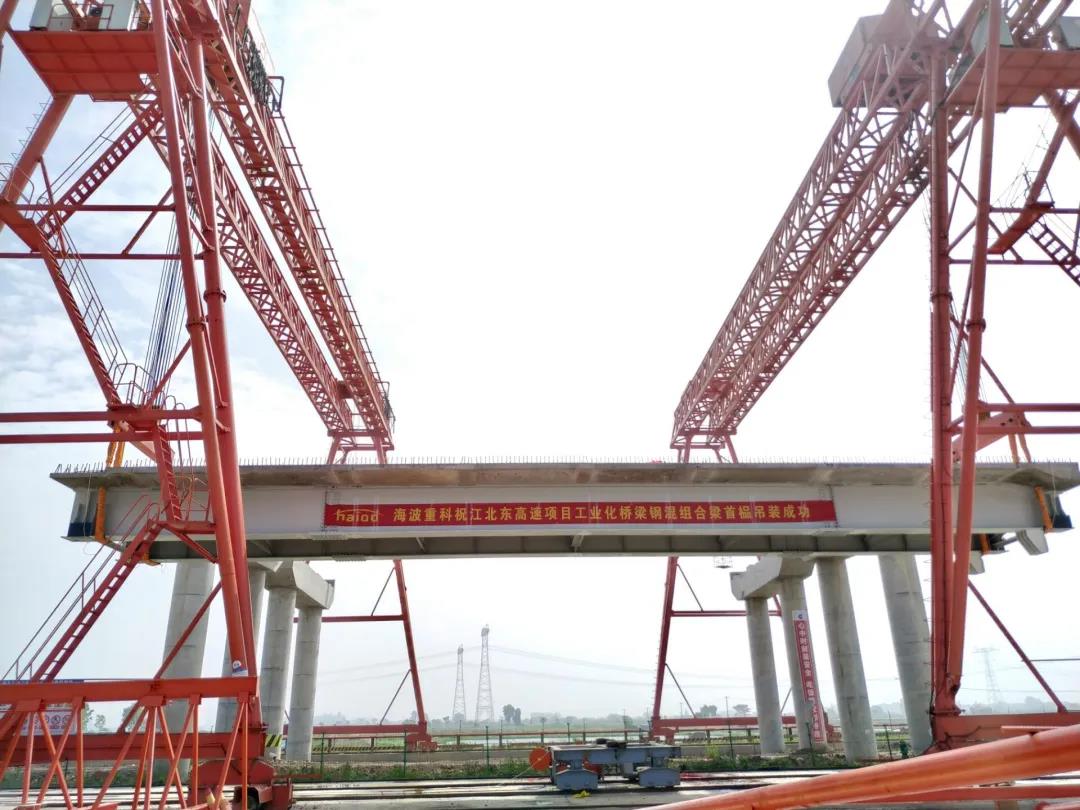 在經(jīng)過(guò)一系列工序轉(zhuǎn)換后,由海波重科承建的江北東高速項(xiàng)目工業(yè)化橋梁鋼混組合梁首吊成功,標(biāo)志著湖北省首例工業(yè)化橋梁實(shí)施項(xiàng)目正式邁入上部結(jié)構(gòu)沖刺階段。為江北東項(xiàng)目2020年建成通車奠定了堅(jiān)實(shí)基礎(chǔ)。