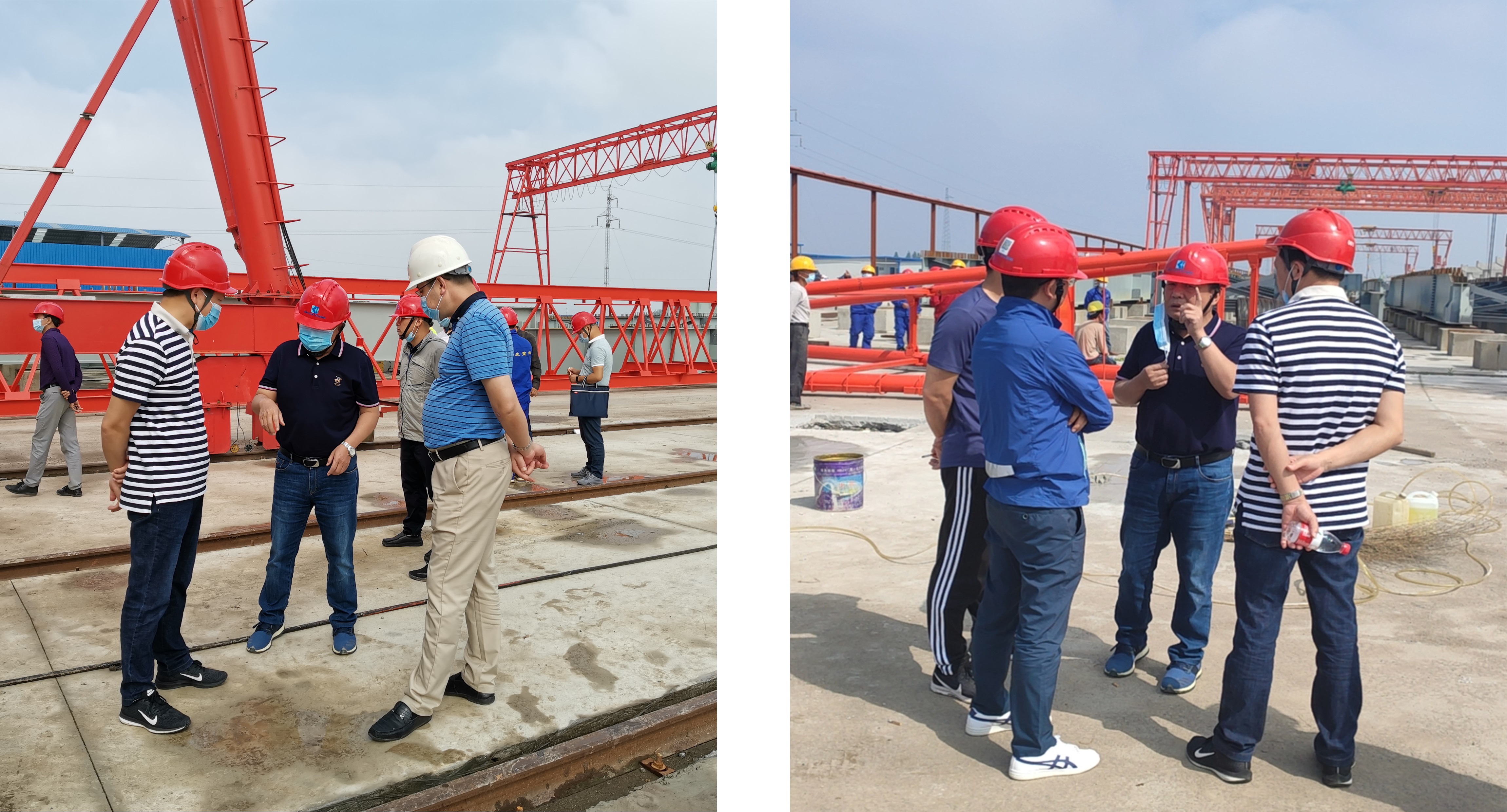 (海波重科新聞報(bào)道)2020年5月26日上午9:00,業(yè)主、項(xiàng)目公司副總經(jīng)理黃遵義、長(zhǎng)江路橋江北東高速項(xiàng)目經(jīng)理王懷才、副經(jīng)理白朝峰、總工楊建波、PC預(yù)制場(chǎng)項(xiàng)目負(fù)責(zé)人及項(xiàng)目副經(jīng)理程波、技術(shù)部部長(zhǎng)歐陽(yáng)旭、監(jiān)理單位總監(jiān)辦總監(jiān)文輝、副總監(jiān)張貴士、副總監(jiān)趙廷奎、質(zhì)量部部長(zhǎng)鄧再鑫、試驗(yàn)室主任安紅偉、海波重科總經(jīng)理劉乾俊、海波重科項(xiàng)目現(xiàn)場(chǎng)負(fù)責(zé)人閆思為等各位領(lǐng)導(dǎo)、現(xiàn)場(chǎng)作業(yè)人員及媒體記者工作人員共同見(jiàn)證江北東高速項(xiàng)目工業(yè)化橋梁鋼混組合梁首吊的成功。