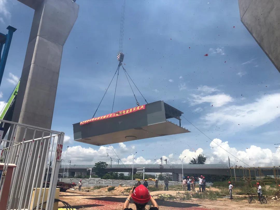 (海波重科新聞報(bào)道)2020年7月27日,由海波重科承建的珠海高新互通立交工程GXSG1標(biāo)順利完成鋼箱梁首吊任務(wù),標(biāo)志著珠海高新互通立交工程開(kāi)啟了新的篇章。