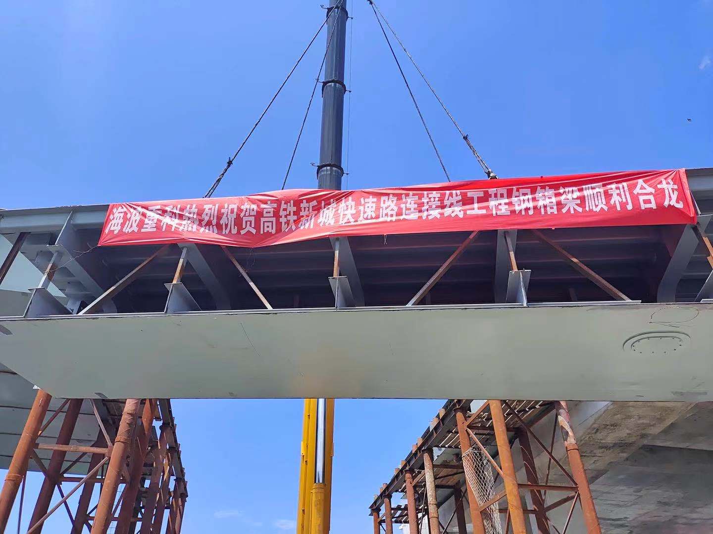 (海波重科新聞報道)2020年8月26日上午,由海波重科承建的高鐵新城快速路連接線工程上跨繞城高速主跨鋼箱梁成功合龍!意味著項目高架施工全面進入沖刺階段,并為年內(nèi)實現(xiàn)高架通車目標打下堅實基礎(chǔ)。