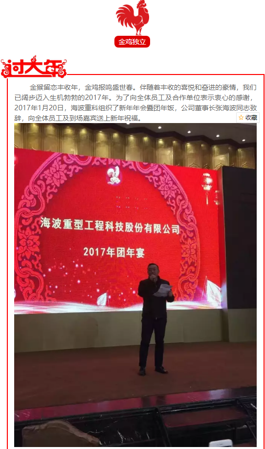 新年伊始,萬象更新,又是一個生機(jī)蓬勃的春天向我們走來。值此新春佳節(jié)之際,我謹(jǐn)代表海波重型工程科技股份有限公司向全體嘉賓及員工致以衷心的感謝,向各崗位努力工作的全體員工及家屬致以崇高的敬意。祝愿大家在新的一年里身體健康、萬事如意、闔家歡樂、事業(yè)有成!